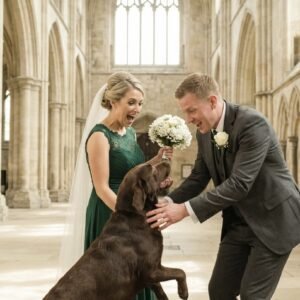During the wedding ceremony, the dog suddenly seized the edge of the bride’s gown in its teeth and began barking wildly. That day, the church looked almost…