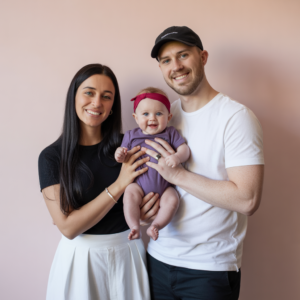 Young couple put daughter inside the fir…